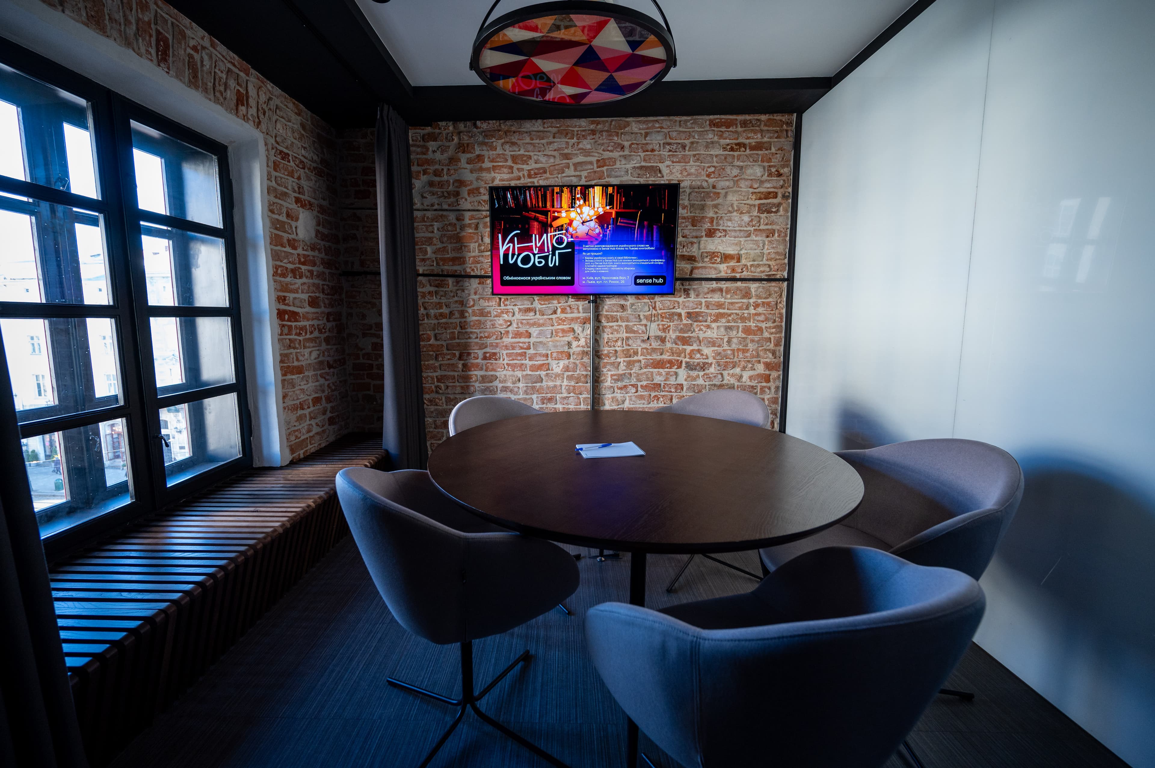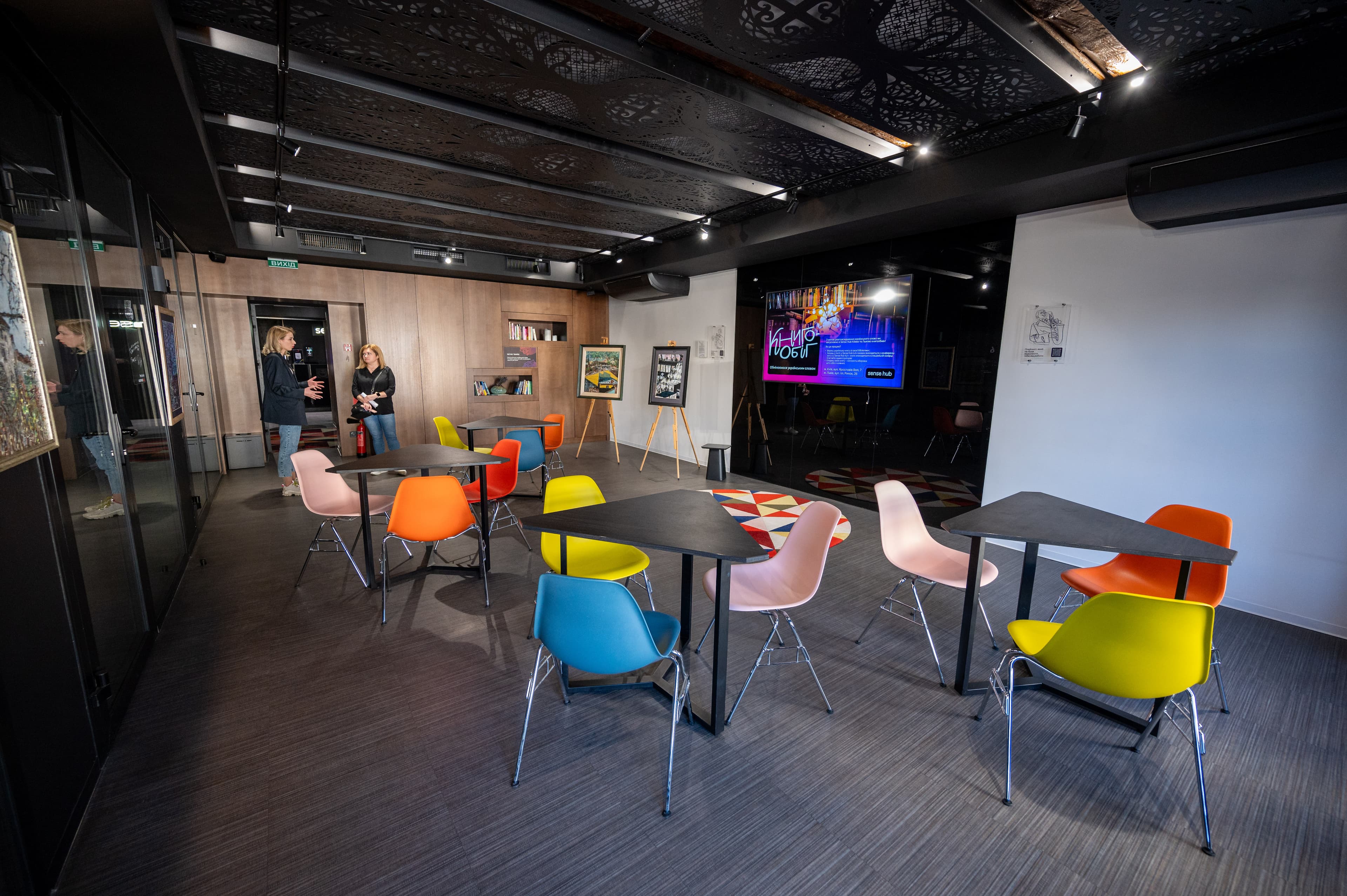 До Sense Hub Lviv – локації унікального сучасного простору для роботи та зустрічей у середмісті входить коворкінг, конференц-зал, сім переговорних кімнат і креативні зони відпочинку – relax room, stress room, media room, bar.