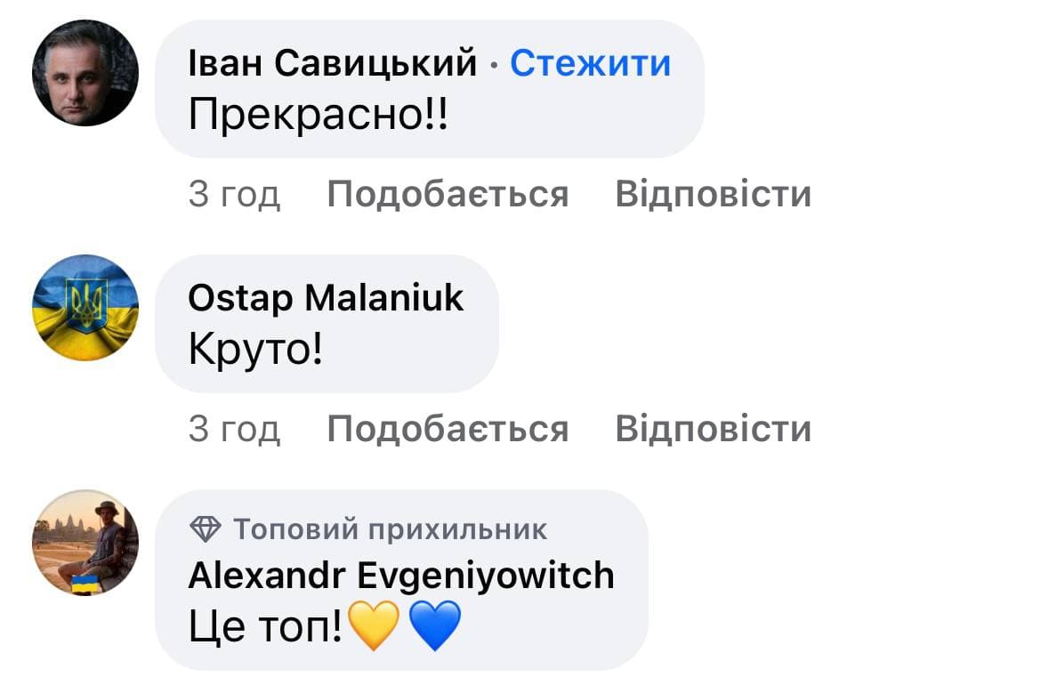 Прихильні коментарі під постом Андрія Садового про новий простір у Facebook