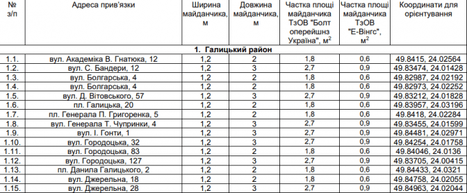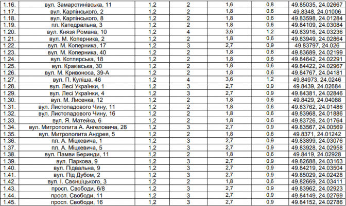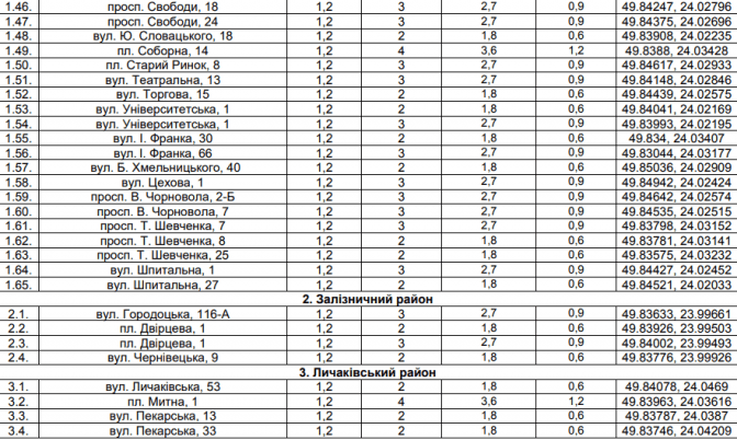 Йдеться про 79 локацій, розташованих в основному у центральній частині міста.