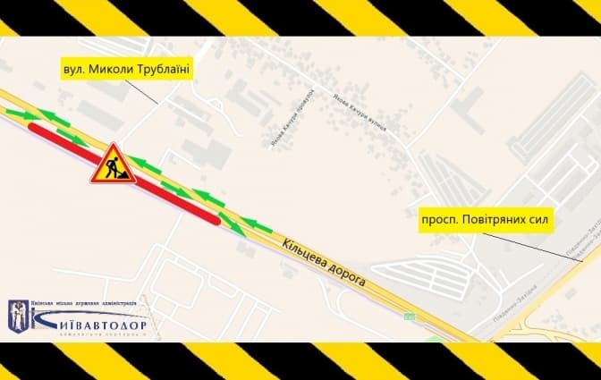 Із 6 квітня обмежать рух транспорту від розвороту біля Кільцевої дороги, 14-В у напрямку Жулянського шляхопроводу. На час проведення ремонту в одній частині магістралі рух транспорту організують у двох смугах протилежної частини дороги.