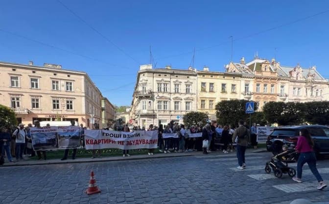 Біля прокуратури і Львівської ОВА мітингували проти забудовника, який відтермінував здачу будинку