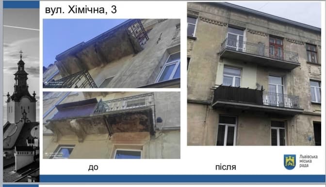У Львові діє відповідна Програма, що на умовах співфінансування: 80% коштів платить місто, а 20% мешканці, можна провести ремонт балкону. За цією Програмою у 2023 році відремонтовано 49 балконів, з яких 40 індивідуальних балконів та 9 загального користування. Фінансова частка міста тут становила 4,3 млн грн.