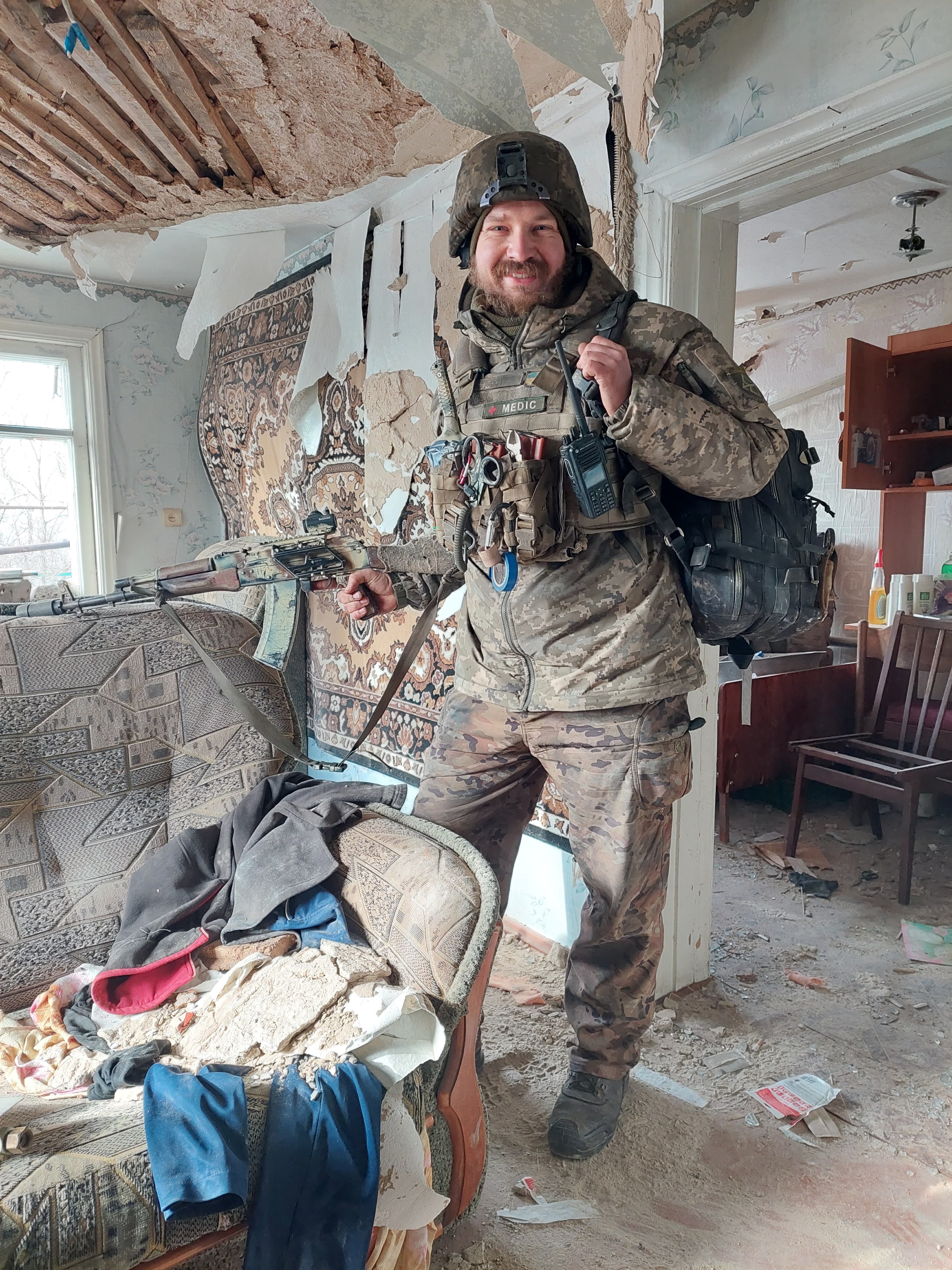 «Були різні випадки, в яких доводилося надавати допомогу пораненим. Наприклад, коли ми виїжджали після ураження артилерією, на множинні осколкові поранення. Їдучи на позицію, я вже прокручував у голові, що є в медичному наплічнику і кому доведеться застосувати те чи інше. У моїй практиці було таке, коли я одночасно надавав допомогу відразу чотирьом пораненим, – розповідає він. – В ідеалі під час війни індивідуальну аптечку повинен мати кожен цивільний українець і рядовий військовий, як і знати ази надання домедичної допомоги, зокрема те, як накласти турнікет, затиснути чи тампонувати рану, правильно використати медичний бандаж. Це справді рятує життя або принаймні зменшує вірогідність критичних травм. Тоді бойовий медик уже не витрачатиме час на легких поранених, а візьметься за важчих, чим і врятує життя».