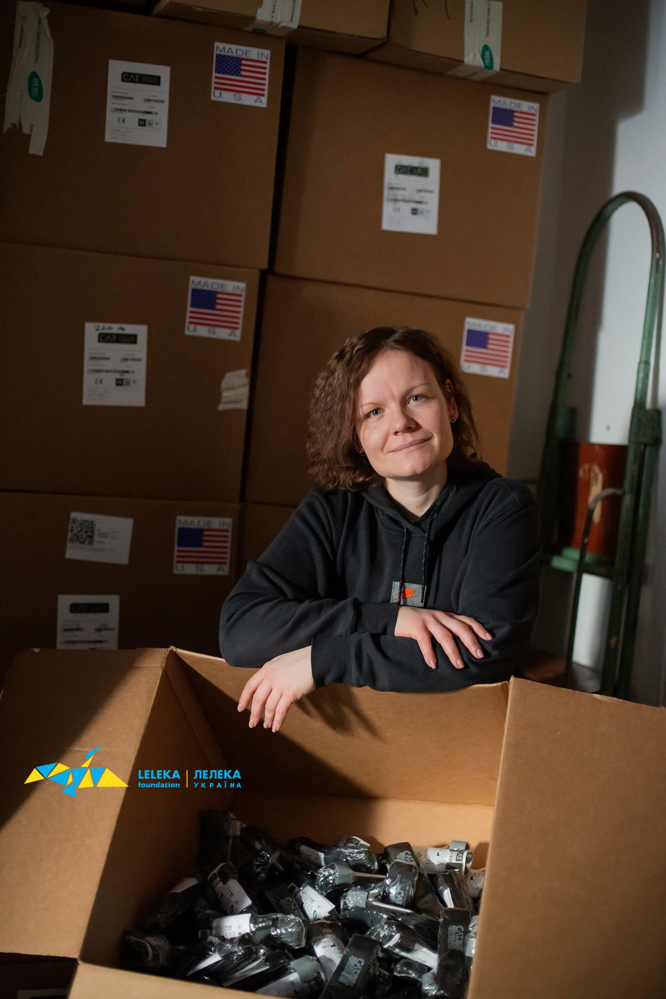 Медициною для передової з 2014 року займалася тоді ще волонтерка, а тепер очільниця Фонду Leleka Foundation/БФ Лелека-Україна Ірина Гук. І якщо, з її слів, типовою посилкою для медиків в перші місяці війни були коробки з перекисом, зеленкою і бинтами 1989 року випуску, то тепер це найсучасніші засоби тактичної медицини - такі ж, як використовуються в арміях країн НАТО.