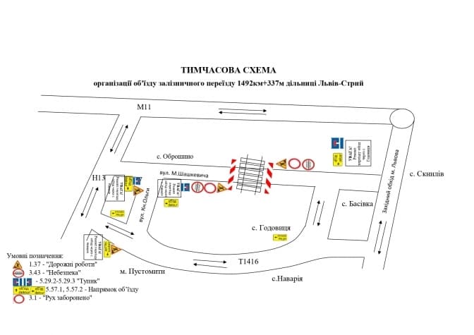 Біля Львова перекриють рух через залізничний переїзд. Схема об'їзду