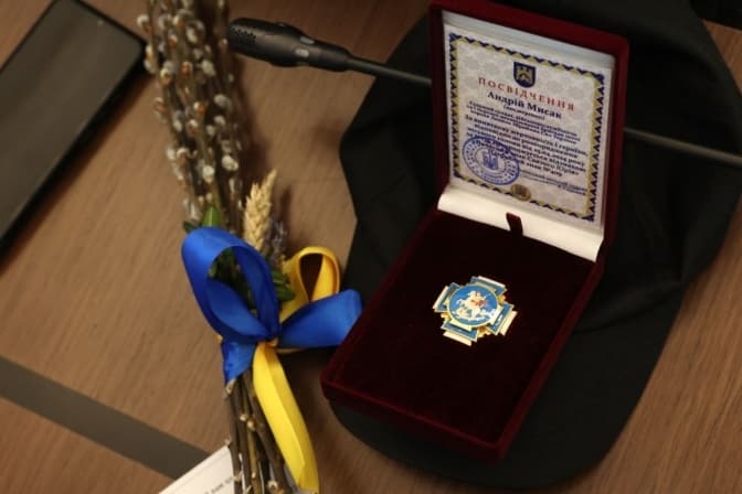 - 12. Військовослужбовець 24-ї окремої механізованої бригади імені короля Данила оперативного командування «Захід» Сухопутних військ Збройних Сил України старший солдат Андрій Мисак. Загинув, обороняючи державу, 21 травня 2022 року поблизу міста Попасна Луганської області. Відзнаку отримав тато Мар'ян Васильович.