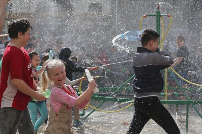 Та: Обливаного понеділка на площі Ринок цьогоріч не буде. Хто все ж бажає дотримуватись традицій обливаного понеділка, у місті працюють фонтани на пл. Митній і біля Оперного театру.