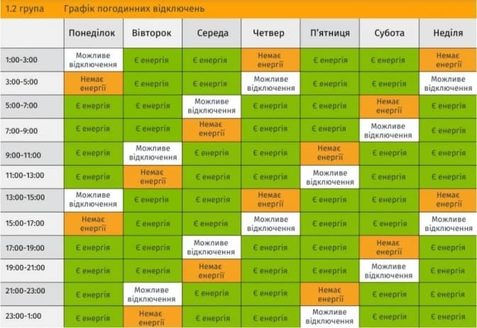 Графіки погодинних відключень: