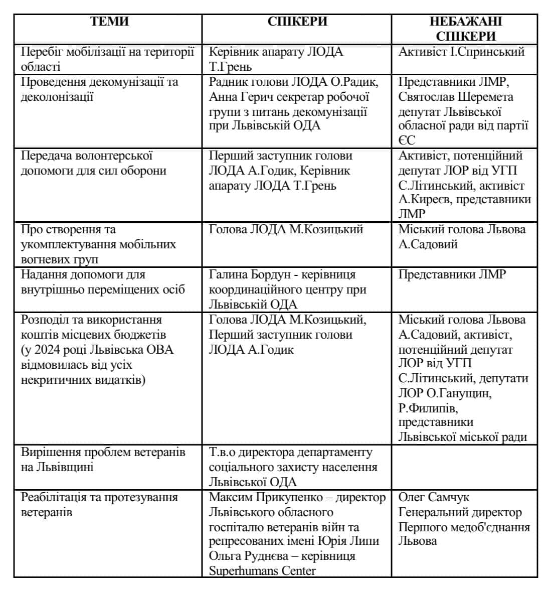На Львівщині такими небажаними спікерами є: