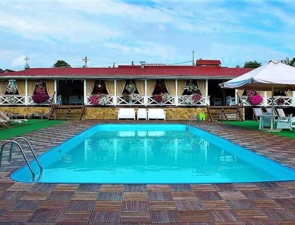 Відкритий басейн посеред природи. Сучасне обладнання дозволяє підтримувати температуру води +30, а в зимовий період до + 40 градусів, тому басейн працює цілий рік.