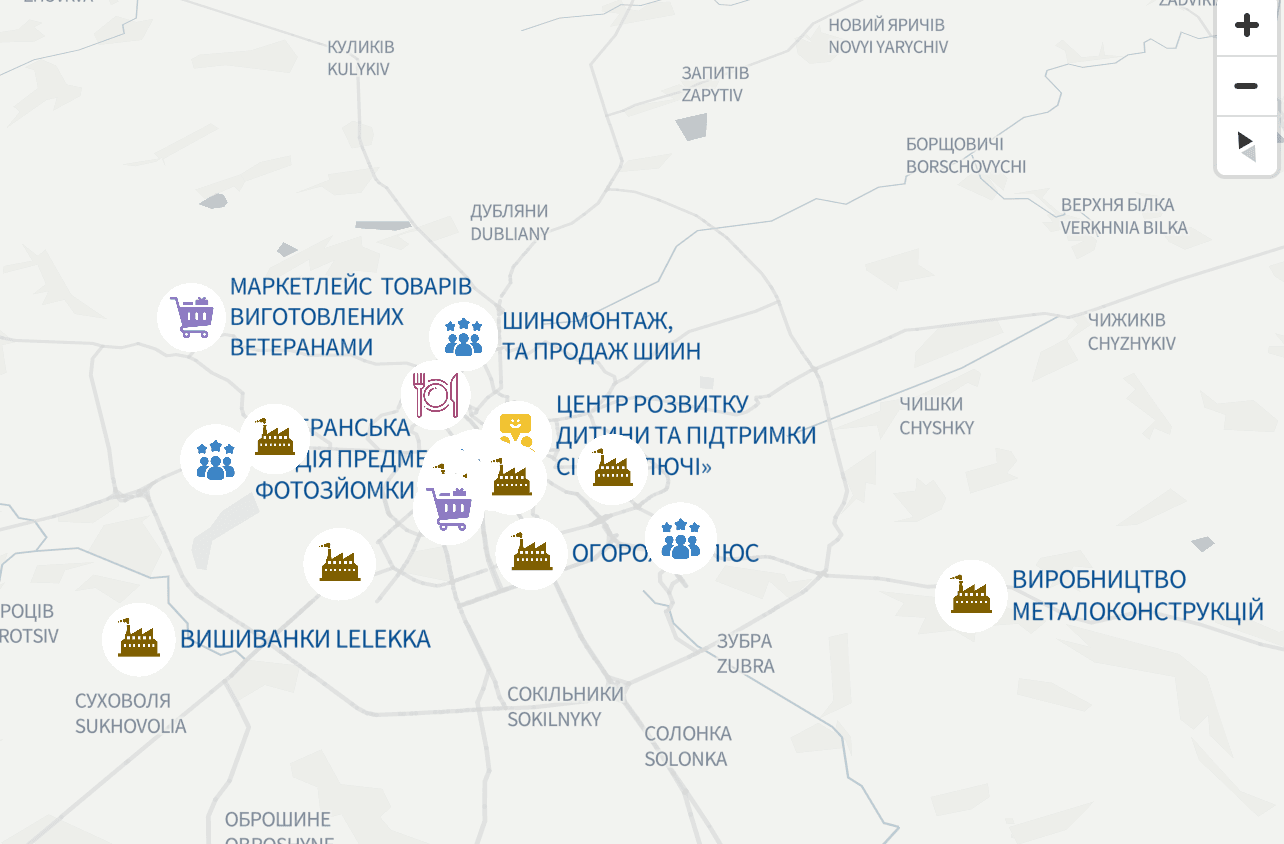На мапі зображена інформація про 19 бізнесів, які заснували ветерани чи їхні рідні. Онлайн-мапу опублікували на сайті ЛМР.