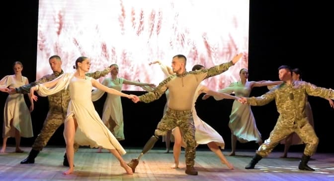 Випускник ансамблю минулих років Олег Сливар станцював у новій постановці «Люди – титани» на протезі.