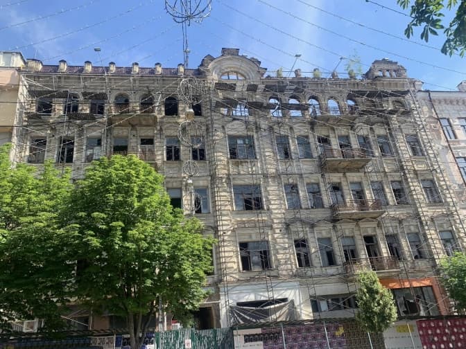 З пам’ятки архітектури на вул. Хмельницького, 12 у Києві зняли рекламний банер: виявилось, що будівля частково розібрана. Про це повідомляє активіст Дмитро Перов.