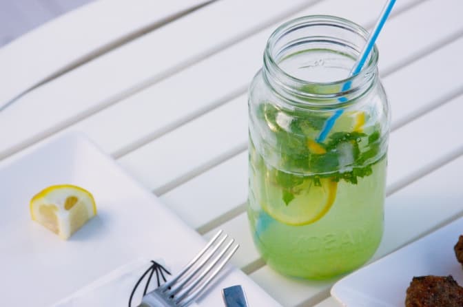 З лимона вичавити сік. Огірок очистити від шкірки і дрібно порізати. Збити блендером огірок і листя м'яти з невеликою кількістю води до однорідної маси. Залити отриману масу водою, додати лимонний сік, тертий імбир і поставити у холодильник на 1 годину. Налити коктейль у склянки, додати лід і прикрасити листочками м'яти.