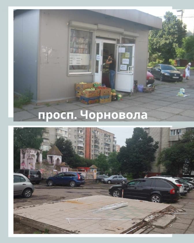 Він додав, що на проспекті Чорновола, 101 ще один МАФ залишався поза законом з 2017 року. Тоді міська рада не продовжила термін здійснення підприємницької діяльності, а в 2019 році районна адміністрація виграла суд, який постановив демонтувати тимчасову споруду.