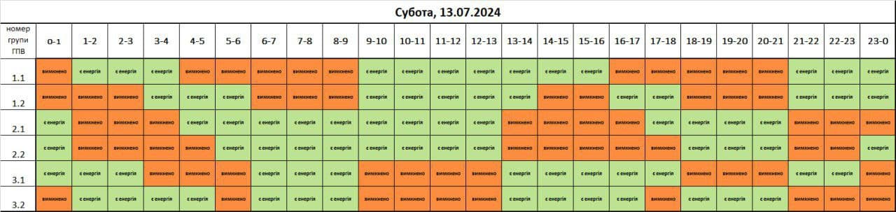 «У Львові та області за розпорядженням НЕК «Укренерго» збільшився обсяг відключень на сьогодні (13 липня), починаючи з 14:00 діятимуть три черги. Інформація сформована станом на 12:00»