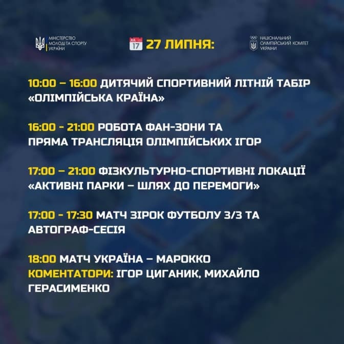 Тут відбуватимуться трансляції змагань, зустрічі та автограф-сесії з відомими спортсменами, працюватимуть спортивні локації, дитячий денний табір та зони майстер-класів.