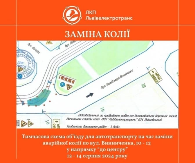 «Перед місцем робіт будуть встановлені відповідні тимчасові дорожні знаки. Тому, просимо автомобілістів та інших учасників руху зважати на зміну схеми дорожнього руху, бути уважними, обирати безпечну швидкість, або альтернативний маршрут», – зазначив керівник служби колії ЛКП «Львівелектротранс» Богдан Янішевський.