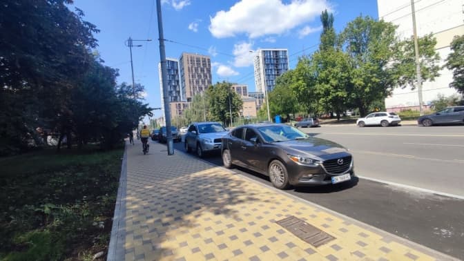 Крім цього, вздовж велосипедної доріжки вже почали паркуватися автівки. За проєктом, там мали встановити антипаркувальні стовпчики чи паркани, але наразі вони відсутні.