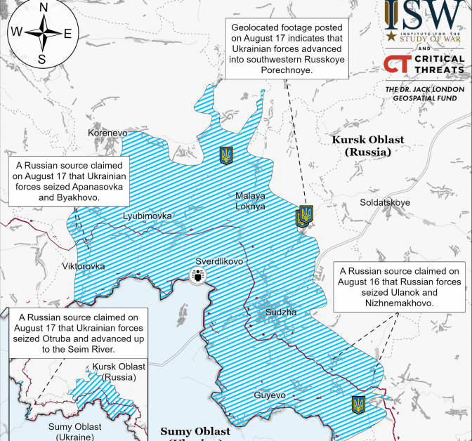 Російські війська загалом окупували 1175 квадратних кілометрів території на всьому театрі бойових дій за сім місяців із січня до липня цього року. Під час операції України в Курській області військові просунулася приблизно на 800 квадратних кілометрів протягом шести днів з 6 по 12 серпня та просунулася вглиб приблизно на 28 кілометрів станом на 17 серпня.