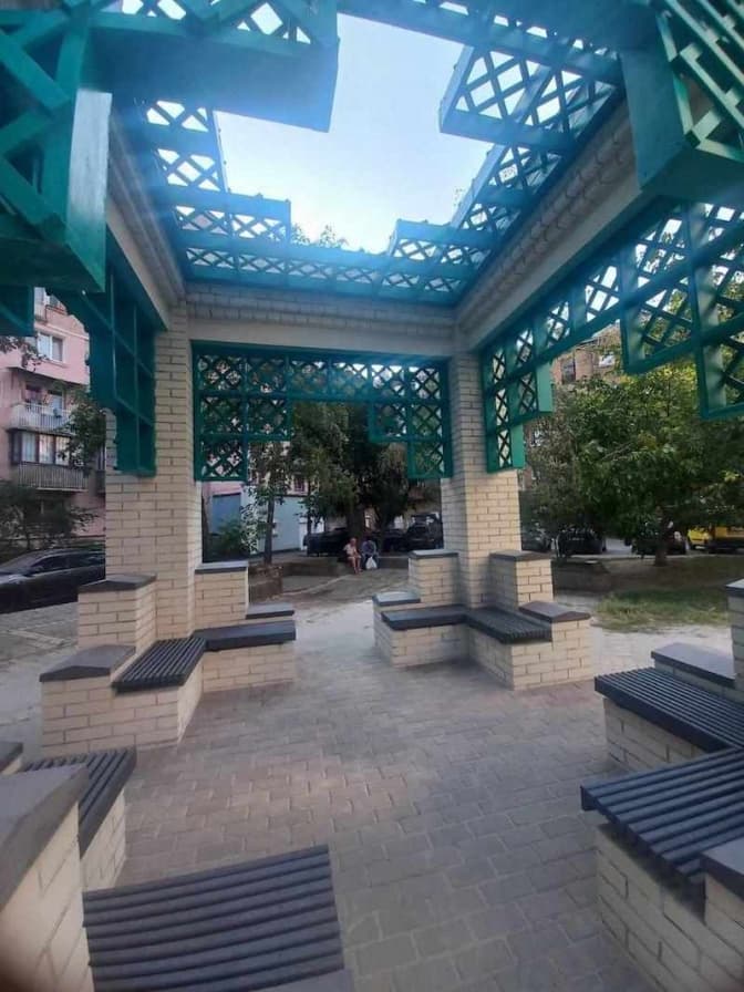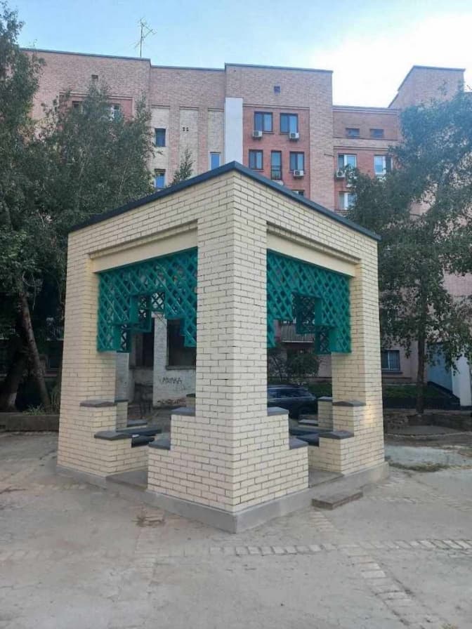 Але роботи з відновлення не могли почати до теплого сезону. Процес гальмувався через пошуки ліцензованих компаній, обстріли тощо. Зрештою, коли приступили до ремонту, виявилося, що в альтанки немає фундаменту, а цегла настільки крихка, що розсипалася в руках. Двічі бригаду майстрів забирали працівники ТЦК, після чого мешканці самі охороняли будматеріали.