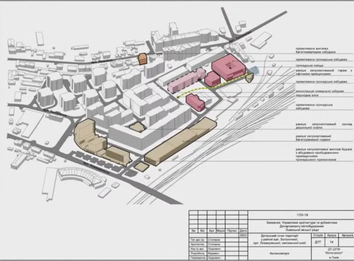 «Це є угроблений квартал. Ми угробили вул. Залізничну, вже пару років не можливо пробити тротуар, адже хтось зробив там парковку. Ця вулиця генеральним планом була передбачена як магістральна, але вона не може нею бути за жодними параметрами. Тому потрібно додати пішохідного простору всередині кварталу», – прокоментував головний архітектор проєктів ДІПМ «Містопроект» архітектор Петро Крупа.
