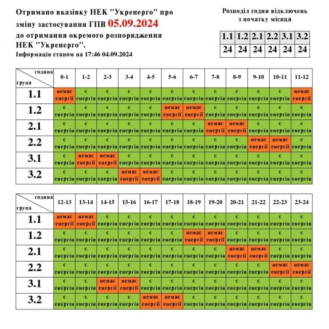 Зазначимо, у зв’язку з оновленням черг графіків погодинних вимкнень у деяких споживачів змінилась групи відключень.