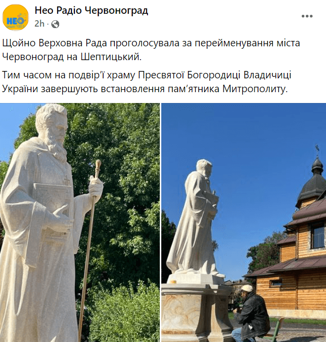 До слова, громадська активістка Анастасія Безпалько також пропонувала перейменувати місто Червоноград на Шептицький (аналогічно до Хмельницького чи Кропивницького). Вона пояснювала це так:
