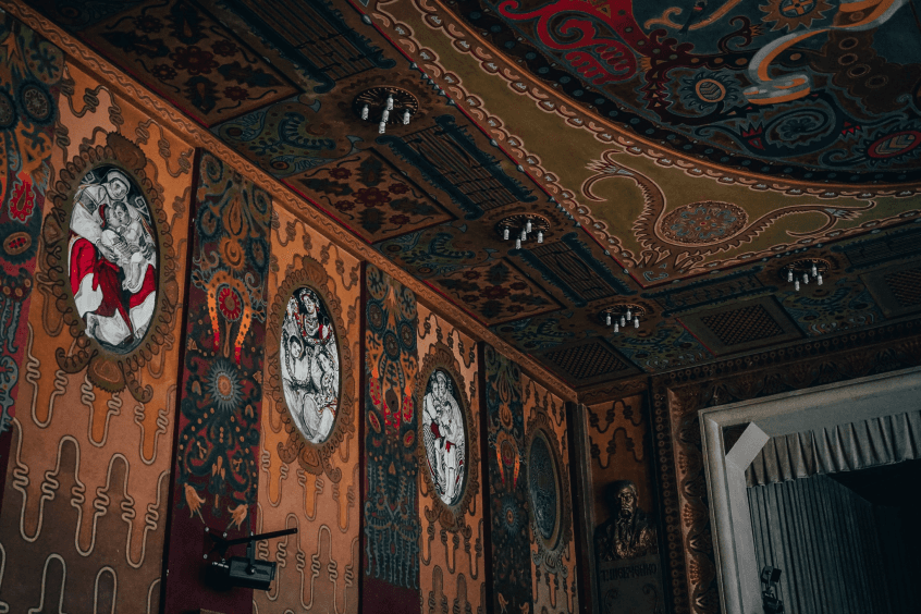 Мала зала на третьому поверсі також зберігає частину спадщини художника. Тут Сосенко зобразив Кобзаря, троїстих музик і сопілкарів – сцени з українського народного життя, які художник відтворив за допомогою фотографій. Це були одні з останніх розписів, створених ним перед мобілізацією під час Першої світової війни. На жаль, через війну Сосенко не зміг завершити роботу, і частина фресок була втрачена або замальована, але ті, що збереглися, дають змогу уявити масштаб його таланту.