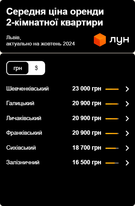 Ціни на оренду квартир у Львові