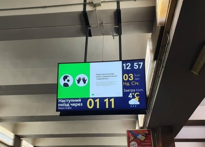 Та: Екрани у метро знову показуватимуть час до прибуття поїзда. Вони також будуть використовувати для сповіщень від Міноборони та ДСНС;