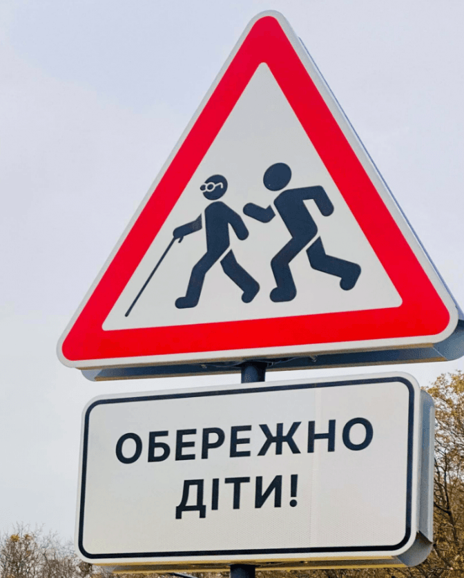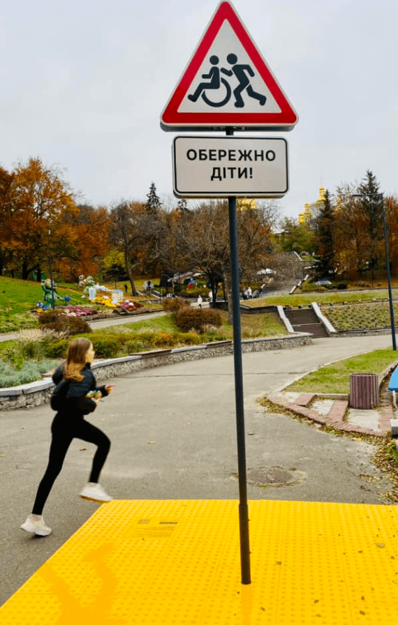 У Києві в парку "Співоче" встановили знак "Обережно діти" для подолання стереотипів про дітей з інвалідністю. Про цеінформуєКиївський міський центр народної творчості.