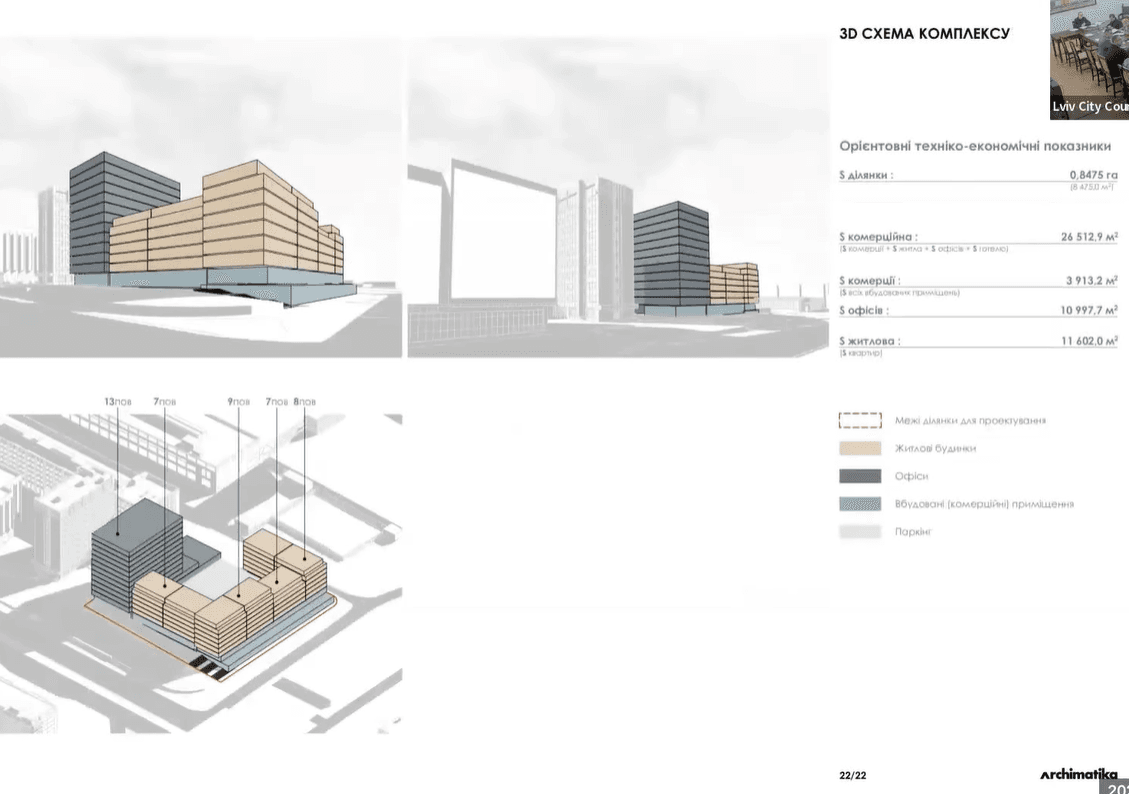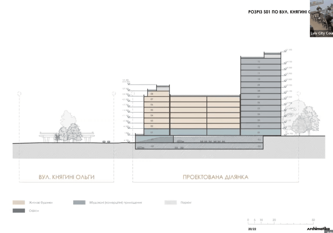 Спершу це будівництво, що на перетині вулиць Княгині Ольги і Наукової, розглядали в березні 2024 року на архітектурно-містобудівній раді. Тоді йшлося про семиповерховий офісний корпус, готель тієї ж поверховості та два житлові будинки. Один з них мав сягати 16-ти поверхів.
