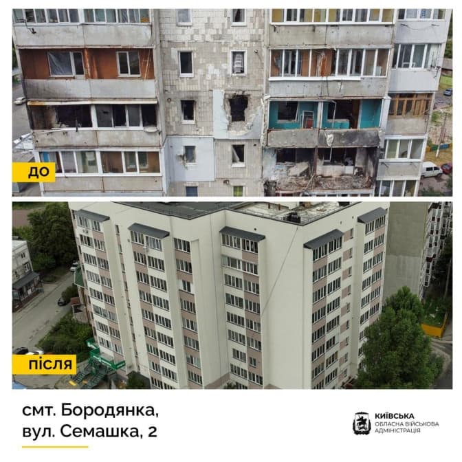 У Бородянці ввели в експлуатацію дев'ятиповерхівку на вулиці Семашка, яку суттєво зруйнували росіяни напочатку повномасштабного вторгнення. Про це повідомив голова Київської ОДА Руслан Кравченко.