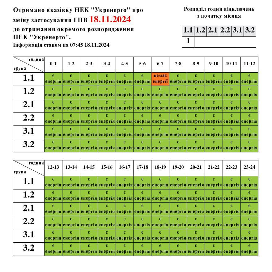 Зазначимо, у зв’язку з оновленням черг графіків погодинних вимкнень у деяких споживачів змінилась групи відключень.