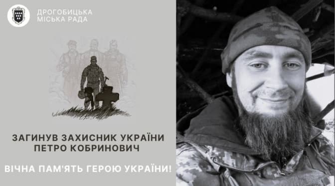 Під час захисту України від ворога загинув дрогобичанин Петро Кобринович. Захисник України близько восьми місяців вважався безвісти зниклим. Лише тепер вдалось повернути тіло воїна для ідентифікації та поховання. Про це повідомила пресслужба Дрогобицької міської ради.