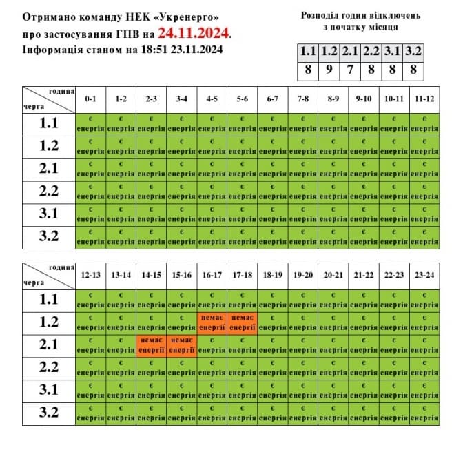 У неділю, 24 листопада, у Львові та області будуть діяти графіки відключень світла. Про це повідомили у «Львівобленерго».