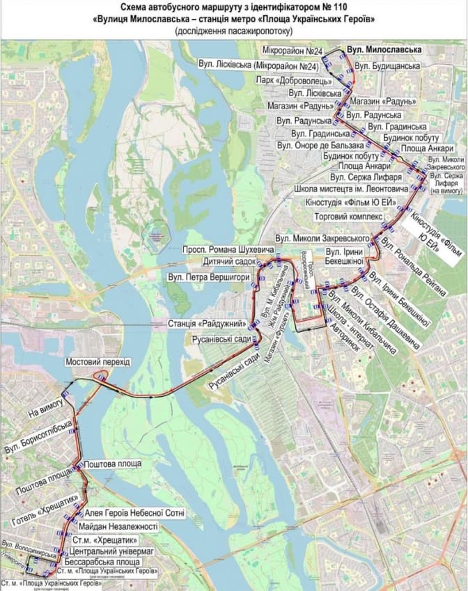 З 1 грудня на маршрут вийде автобус № 110, який курсуватиме від вул. Милославської до ст. м. "Площа Українських Героїв".