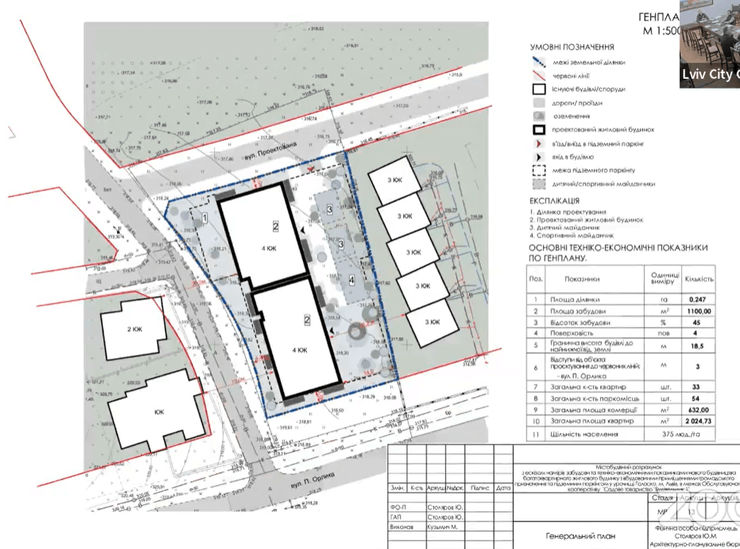 «Згідно з містобудівною документацією, це зона для житлового будівництва. Фактично там планують розмістити чотириповерхові будинки з підземними паркінгами. Кількість місць для паркінгу суттєво вища за кількість квартир – 54 до 33 відповідно», – сказав головний архітектор Львова Антон Коломєйцев.