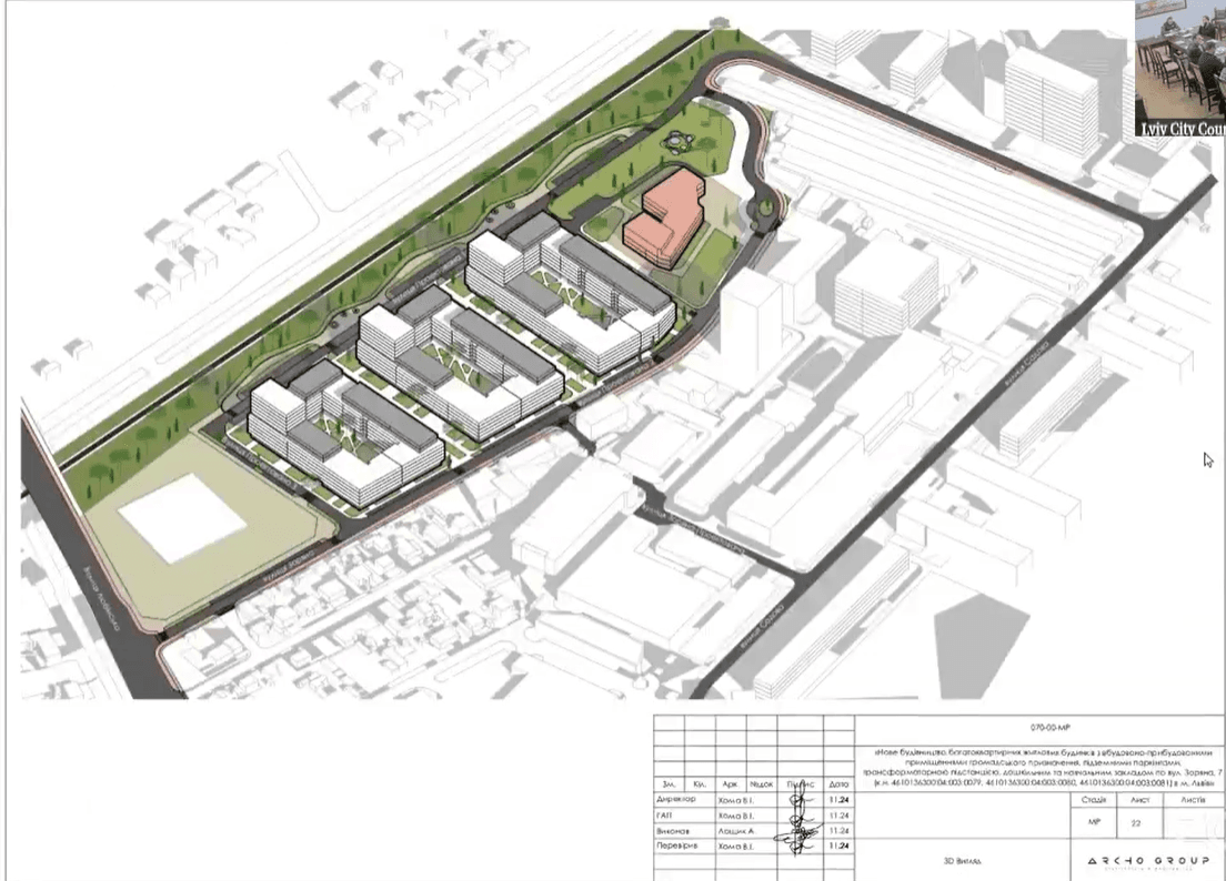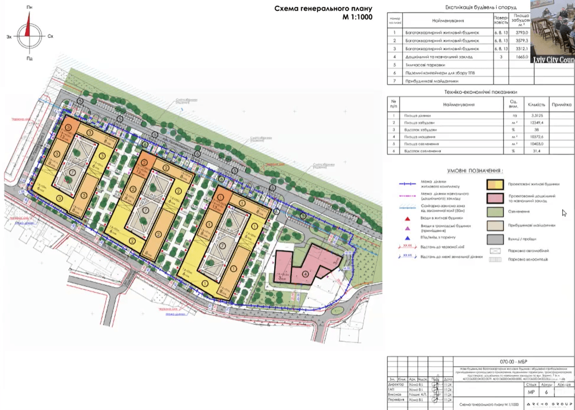 «Подані наміри повністю збігаються з детальним планом території, який був затверджений. Кількість паркомісць відповідає коефіцієнту 0,8 у співвідношенні квартир. Також забудовники гарантують розпочати з першою чергою будівництво навчального закладу та закінчити його із завершенням другої з трьох черг», – сказали під час засідання.