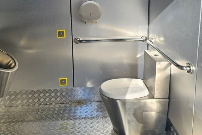 З 13 грудня у Львові на просп. Свободи, 7 почала працювати інклюзивна модульна вбиральня. Вартість послуги наразі складає 20 грн, але розробляється механізм, щоб військові могли користуватися вбиральнею безкоштовно. Вбиральня не працюватиме під час вимкнення світла. Про це повідомили у пресслужбі ЛМР.