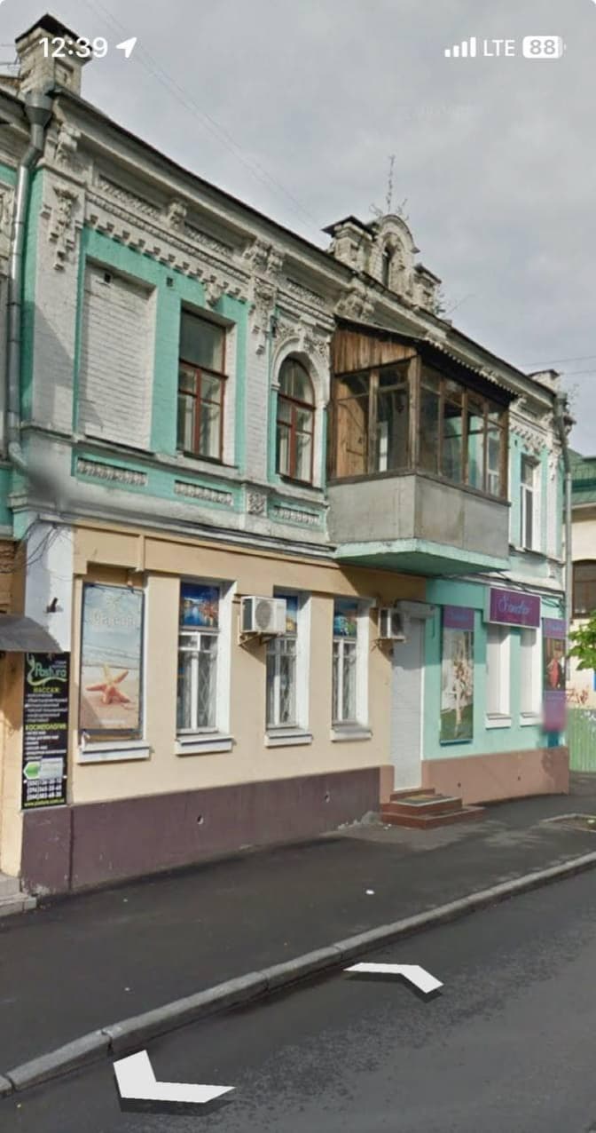 Будівля була зведена близько 1880 р., відомим київським архітектором Карлом Шиманом. На фасаді будівлі розташований один балкон на другому поверсі. Тривалий час він був заскленний, що спотворювало візуальне сприйняття памʼятки та псувало фасад будівлі.