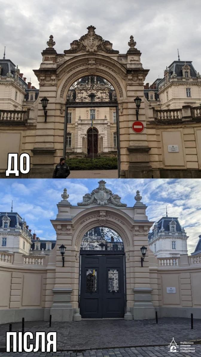 У Львові завершено масштабні реставраційні роботи на вулиці М. Коперника, 15, де відновлено історичну пам'ятку архітектури національного значення. Проєкт передбачав реставрацію в’їзної брами, огорожі, декоративних елементів і офіцин для сторожі палацу. Реставраційні роботи тривали з квітня по грудень 2024 року. Про це повідомляє Управління охорони історичного середовища