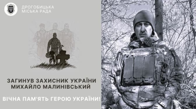 У війні з ворогом загинув мешканець Дрогобицької громади Михайло Малинівський, який був учасником АТО та став на захист Батьківщини під час повномасштабного вторгнення ворога. Про це повідомила пресслужба Дрогобицької міської ради.