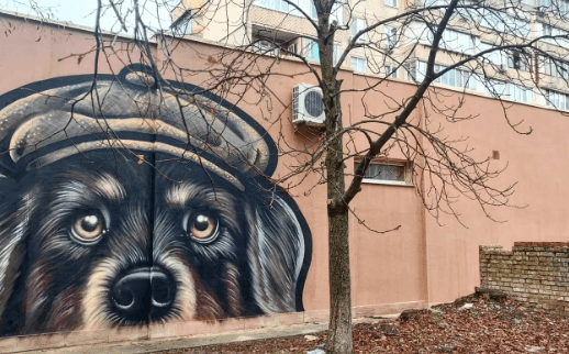 На фасаді притулку "ДворНяшкам Дім" на вулиці Георгія Гонгадзе, 24 зʼявився новий мурал із зображенням собак та кота. Малюнок створила команда Євгенії Фуллен. Про це повідомила Євгенія Фуллен у соцмережах.