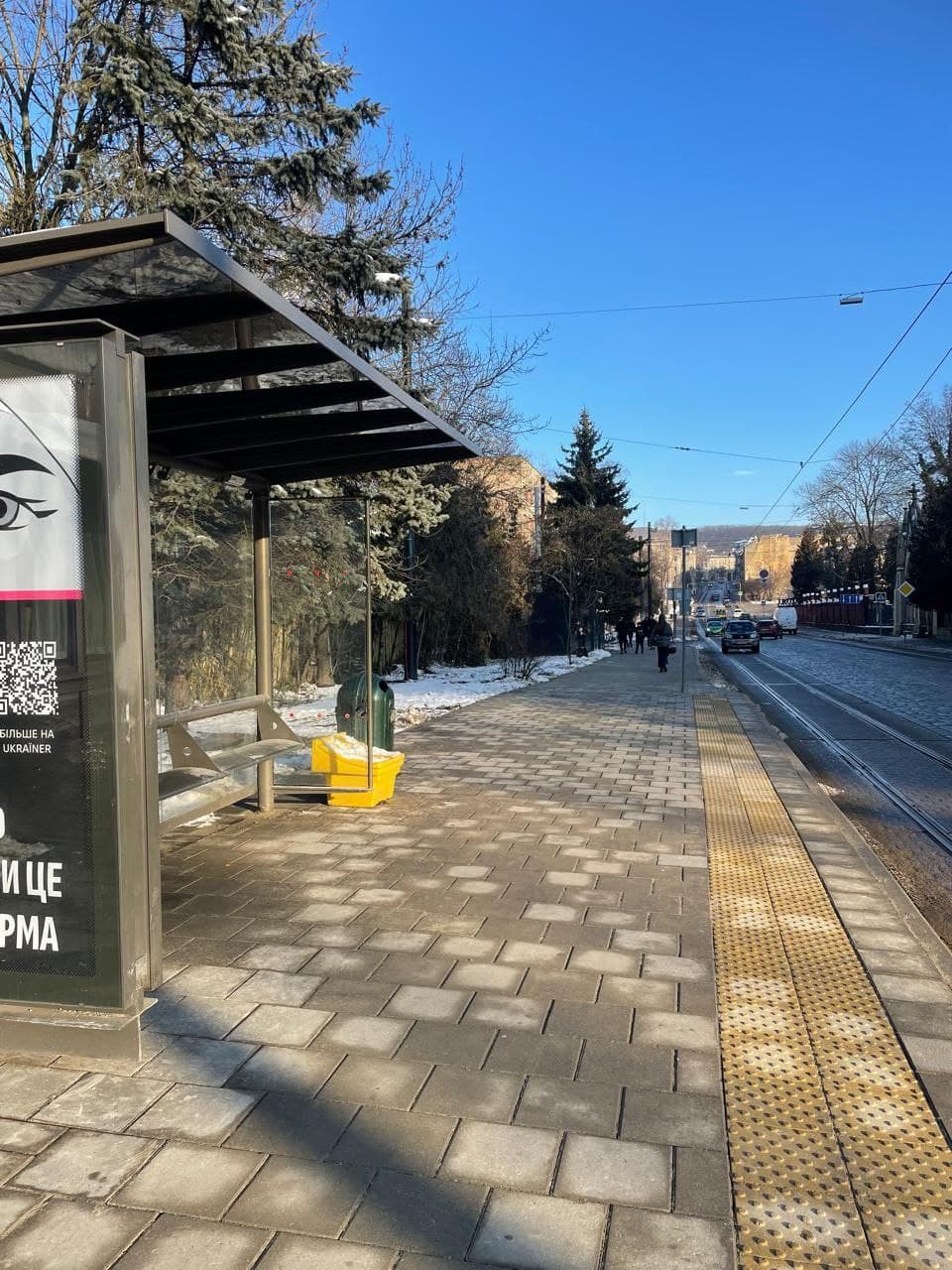 Навпроти Поля почесних поховань у Львові торік облаштували зупинку громадського транспорту, також, інформували в ЛМР, нещодавно понизили бордюри і поклали тактильну плитку, що робить зупинку доступнішою для людей із порушеннями зору.