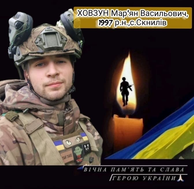 На війні з росією загинув 27-річний захисник зі Львівщини Мар'ян Ховзун. Про це повідомила пресслужба Красненської селищної територіальної громади Золочівського району.