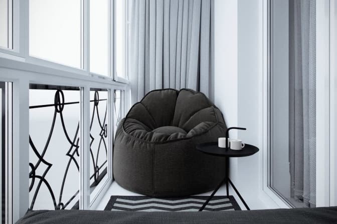 ✖ Крісла-мішки – для невимушеного балконного chill-out! М’яке, мов весняна хмаринка, крісло-мішок створить неформальну атмосферу на балконі. Краще вибирати моделі з водовідштовхувальної тканини – і вони стануть чудовим місцем для відпочинку на свіжому повітрі.