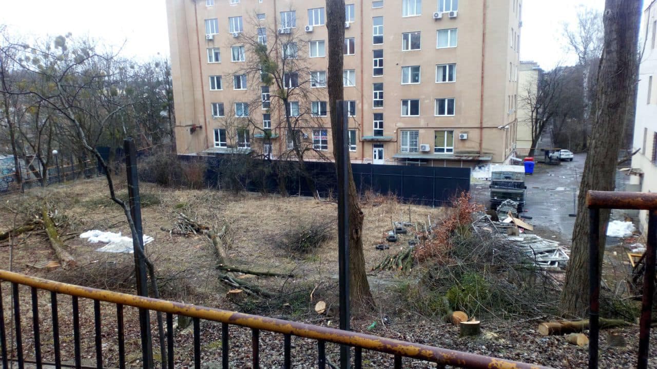 «Поки всі спали, дзвонять люди, що вночі на Тютюнників, де має бути забудова, дерева позрізали. Минулого тижня взнавали у райадміністраціії, чи є дозволи на вирізку, їм сказали, що нема».
