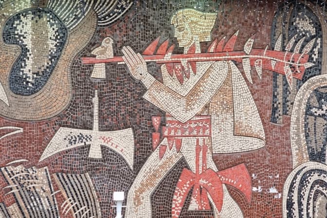Та: Волонтери відмили від бруду, графіті та оголошень мозаїчні панно на Печерську. Його створили у 1969-1970 роках монументалісти Анатолій Гайдамака, Лариса Міщенко та Олександр Міловзоров;